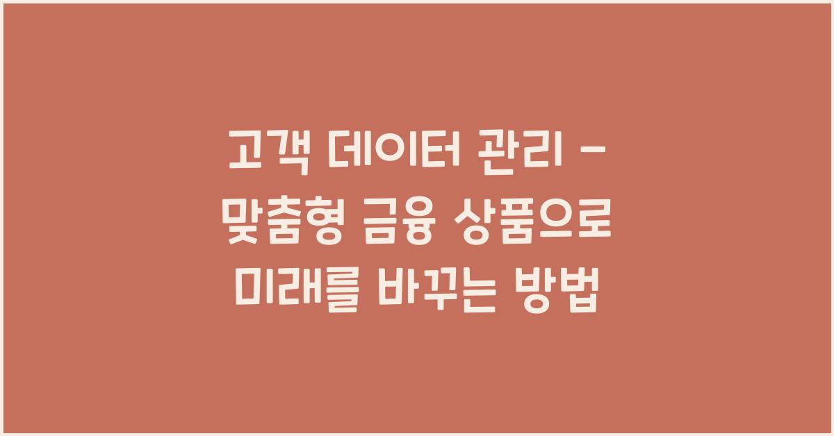 💡 고객 데이터 관리의 중요성고객 데이터 관리 - 맞춤형 금융 상품을 성공적으로 제공하기 위해 우선적으로 살펴봐야 할 부분은 바로 데이터의 중요성입니다. 현대 금융 시장에서 고객 데이터는 그야말로 금과 같습니다. 고객의 취향, 소비 패턴, 신용 정보 등 다양한 데이터가 기업의 전략 수립에 결정적인 역할을 하죠. 예를 들어, 제가 처음 금융업계에 발을 들였을 때, 고객의 데이터를 분석하여 잠재 고객의 니즈를 파악한 덕분에 큰 성과를 거둘 수 있었습니다.고객 데이터 관리 - 맞춤형 금융 상품 더 알아보기적절한 데이터 관리 없이 맞춤형 금융 상품을 제공하려는 시도는 마치 날도 맑고 걸음도 빠른데 길을 잃은 것과 같습니다. 고객이 원하는 맞춤형 상품이 무엇인지를 알기 위해서는 우선 고객의 목소리에 귀 기울여야..