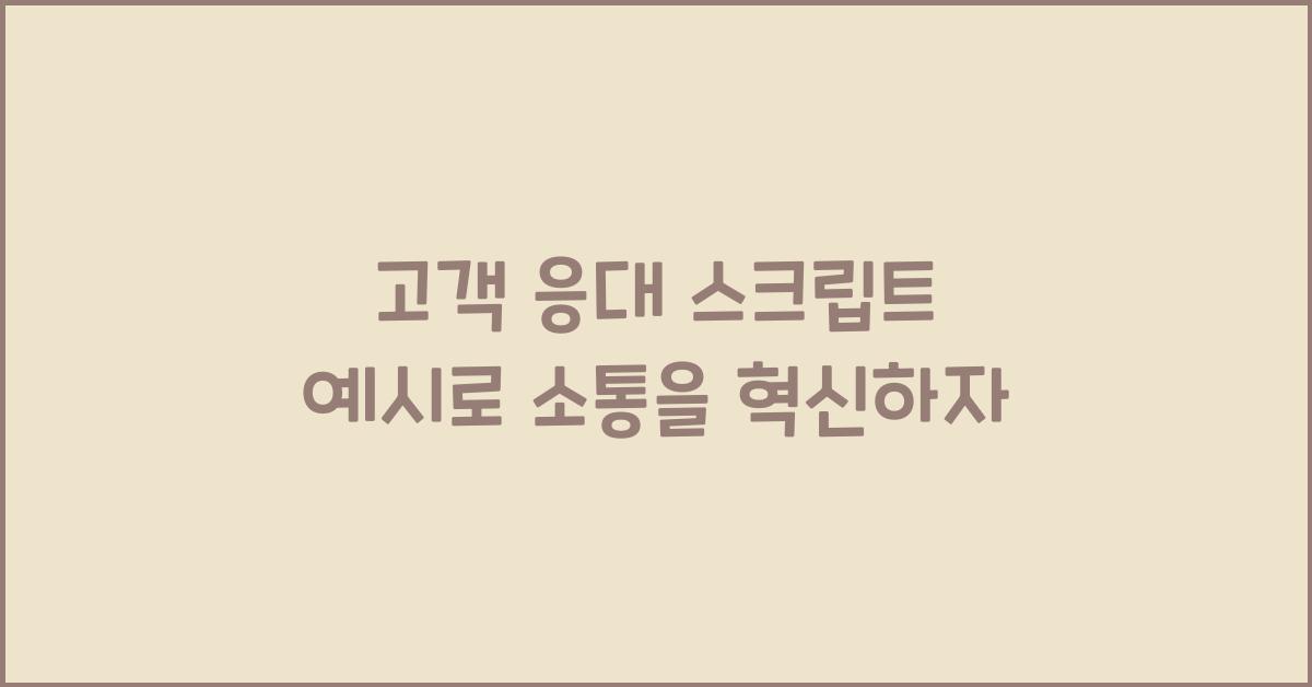 📌 고객 응대의 중요성고객 응대는 단순한 대화의 연장이 아닙니다. 고객과의 숨결이 있는 소통의 시작입니다. 이 과정에서 고객은 회사의 얼굴을 만나고, 신뢰를 얻거나 잃는 순간을 경험하죠. 많은 비즈니스가 이 중요한 순간을 간과하면서 생기는 문제들이 있죠. 고객이 회사에 기대하는 것은 무엇일까요? 바로 친절하고 이해심 있는 대화입니다.💡 고객 응대 스크립트의 필요성고객 응대 스크립트는 효과적인 소통을 위한 가이드라인입니다. 필연적으로, 고객은 다양한 문의를 하게 되고, 이에 대한 전문적이고 적절한 답변을 듣고 싶어 합니다. 고객 응대 스크립트 예시를 통해 우리의 소통을 혁신할 수 있습니다. 상황에 맞는 스크립트를 준비해두면 고객의 불만을 최대한 빠르게 해결할 수 있죠.🔑 고객 응대 스크립트 예시 1:..